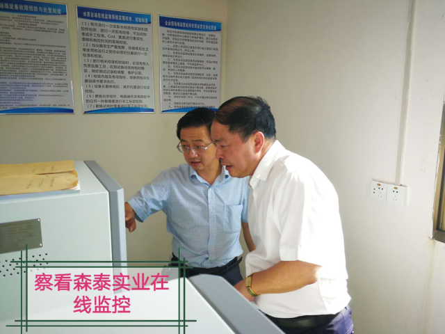 在森泰实业有限公司,胡书记察仔细察看了该公司的污染防治设施和在线监控设备,他要求,要充分利用科技和信息手段,随时掌握企业的排污状况、加强对重点污染企业的监管。