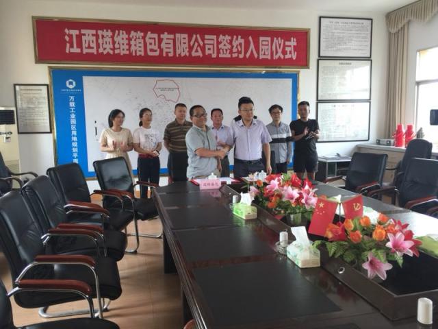 近日,由返乡创业客商彭志勇投资的江西瑛维箱包有限公司与我县签约,正式落户县工业园区。副县长郭瑞清参加签约仪式。瑛维箱包项目总投资10亿元,占地面积200亩,建筑面积16万平方米,主要生产亚马逊智能货架及箱包产品。项目今年年底即可建成投产,年实现销售收入10亿元以上,年上缴税收3000万元以上。