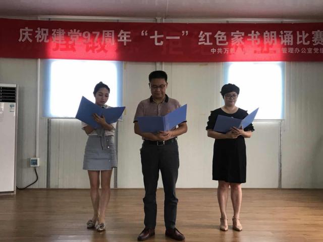 为庆祝建党97周年,万载县国资办举办了一场以红色家书为主题的配乐朗诵比赛。来自国资办机关的四支队伍共8名干职工参加了本次比赛,《赵一曼给儿子的遗书》,《车耀先给女儿的信》,《胡孟晋写给妻子的信》,《清贫——方志敏同志在狱中的一封信》等一封封家书在参赛者声情并茂的朗诵下,把革命先辈的崇高的革命品质和理想信念表现的淋漓尽致。现场全体党员干部职工认真聆听,细细体味,心灵一次次被革命先烈们字里行间的朴实情义所感动,被不怕牺牲、信念坚定的高贵品质所震撼,深刻感悟到革命精神跨越时空的时代光芒和磅礴力量。大家纷纷表示要从《红色家书》中汲取营养、感受力量,不忘初心,砥砺前行,最后,通过5位评委辛云、朱云峰、郑国芳、彭小勇、汪建忠的评分,财务股《赵一曼给儿子的遗书》获得一等奖,处置股《车耀先给女儿的信》获得二等奖,监管股《胡孟晋写给妻子的信》获得三等奖,汪建忠《清贫——方志敏同志在狱中的一封信》获得特别奖。